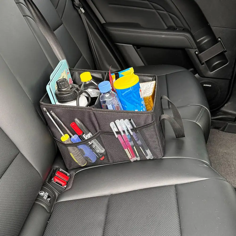 Foldable Car Trunk Organizer | Multi-Pocket Large Storage Box | Save Space Seat Organizer Bin with Adjustable Straps
